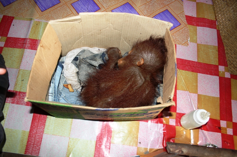 Most orangutans in rehabilitation centers were confiscated past forestry department officials. Occasionally they're handed in by people unable to look after them. The time spent in captivity and the age upon arrival vary, only most are confiscated when they are young, with between 63-97% of intakes under seven years old (Russon, 2009).